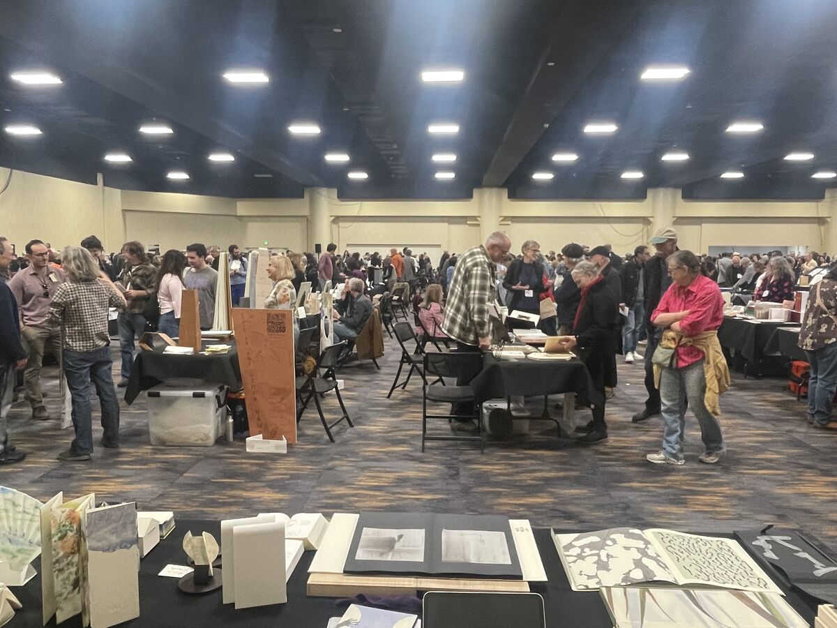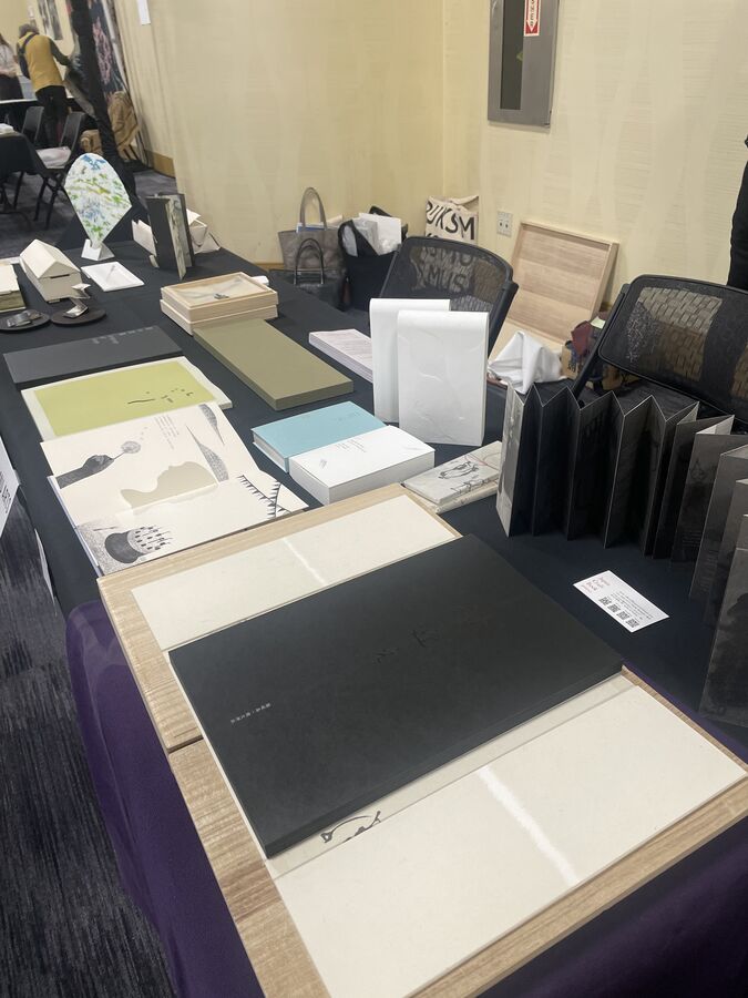 2026年のCODEXは2月7日(土)〜10日(火)の4日間。Oakland Marriott City Centerというホテルのバンケットルームが開催場所でした。初日の7日は10時からアーティスト達が各自のブースで設営をし、一般オープンは12時半からとわりと余裕を持ってのはじまりです。私たちは10時より少し前に行き、地下鉄を歩いていると、目の前に大きなスーツケースを持った女性が同じように「ここでいいのか…」というような表情をしながら歩いていました。話しかけようかな、と思った瞬間、向こうから「You…CODEX?」と聞かれ、「そうだ。」と答えるとお互いに安堵した表情を浮かべ、一緒に地下鉄から地上へと向かいました。